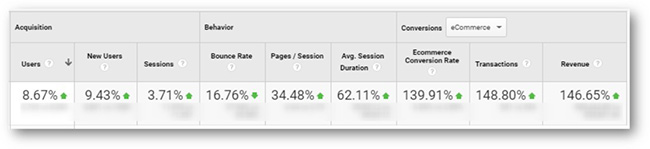 Aside from nice double-digit lifts in the typical KPI’s, we also saw the following significant increases: