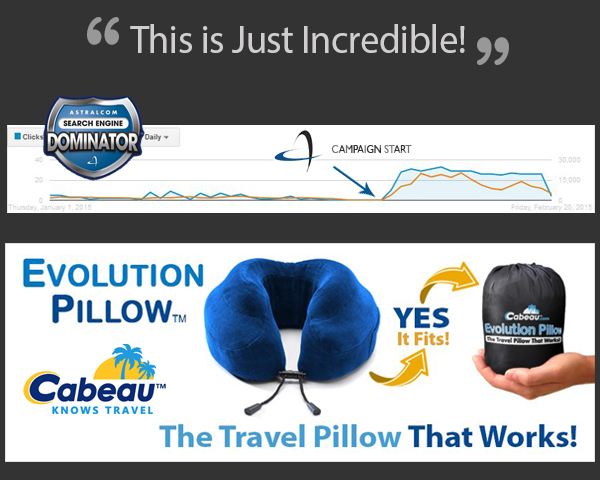 Cabeau, Inc., in Woodland Hills, immediately realized the benefits or working with ASTRALCOM. With exact same budget as their previous partner, ASTRALCOM was able to increase Cabeau’s traffic by 627%, in less than 30 days.