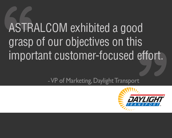 “ASTRALCOM exhibited a good grasp of our objectives on this important customer-focused effort,” said Daylight Transport’s VP of Marketing.
