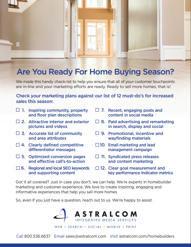 This year, everyone is smarter. Homebuyers are smarter in how they choose homebuilders. Homebuilders are smarter in how they connect with homebuyers. With other builders courting the same buyers that you are, it’s going to be a lot more competitive, this year.