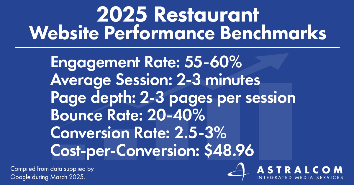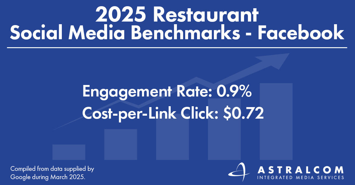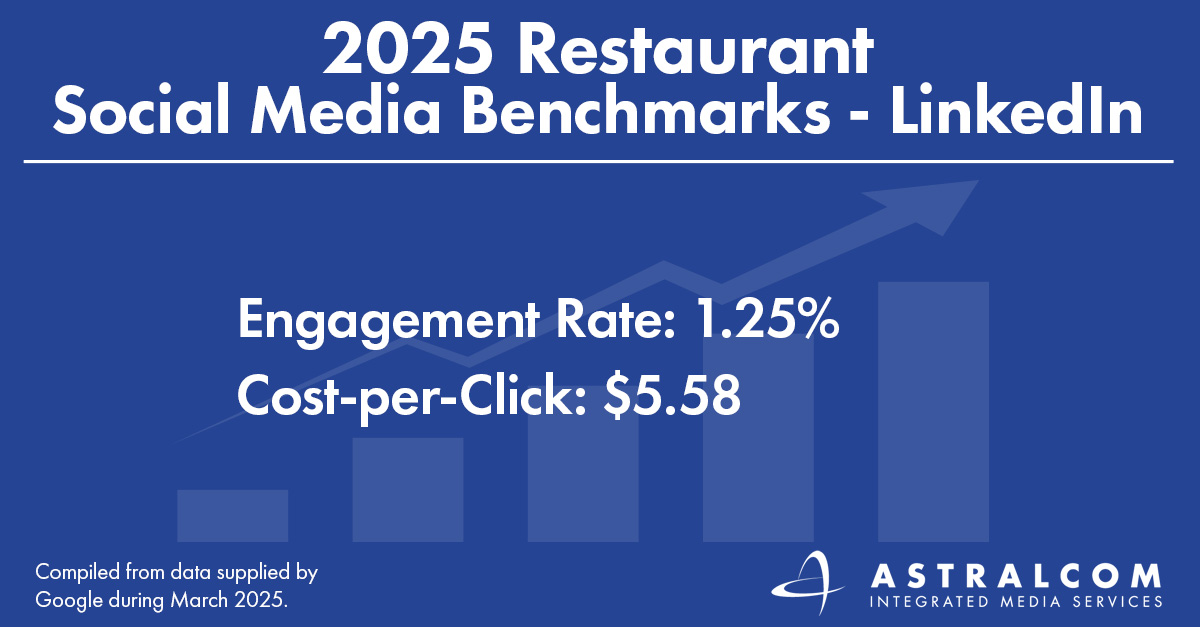 We want to know how your social media performance compares. To find this data, marketers can access detailed analytics within a platform’s ad manager (e.g., Facebook Insights, Instagram Analytics, LinkedIn Campaign Manager, etc.). By reviewing key metrics such as engagement rate and cost-per-click, restaurant marketers can set new, more ambitious goals, adjust targeting, and optimize content for better results across each platform. If your numbers fall short, you’ll know it’s time to change your creative, your messaging, and/or your timing. The team at ASTRALCOM can help you find the perfect blend of campaigns to shine on social.